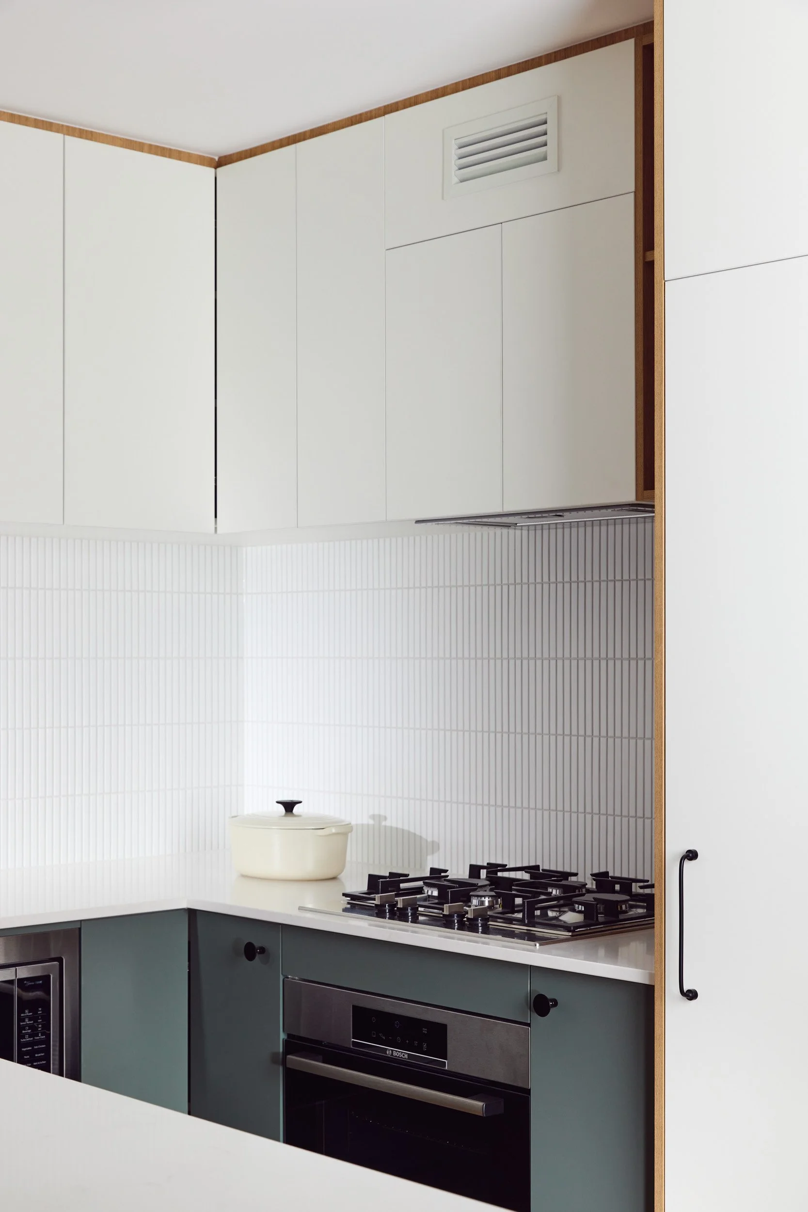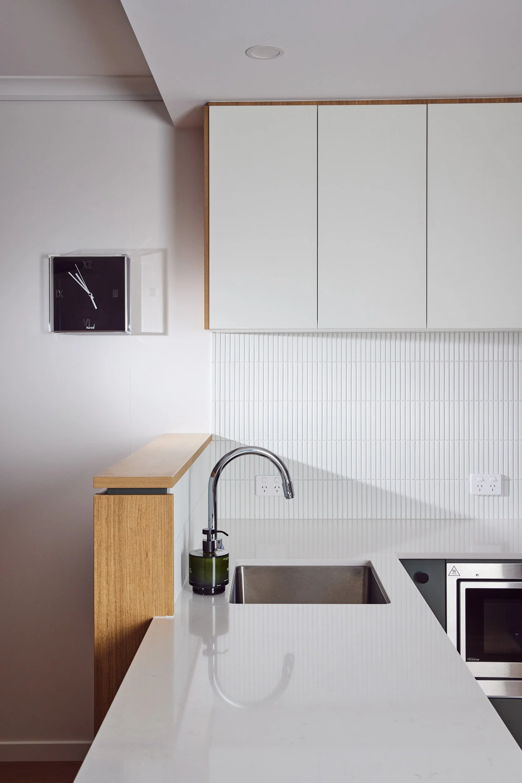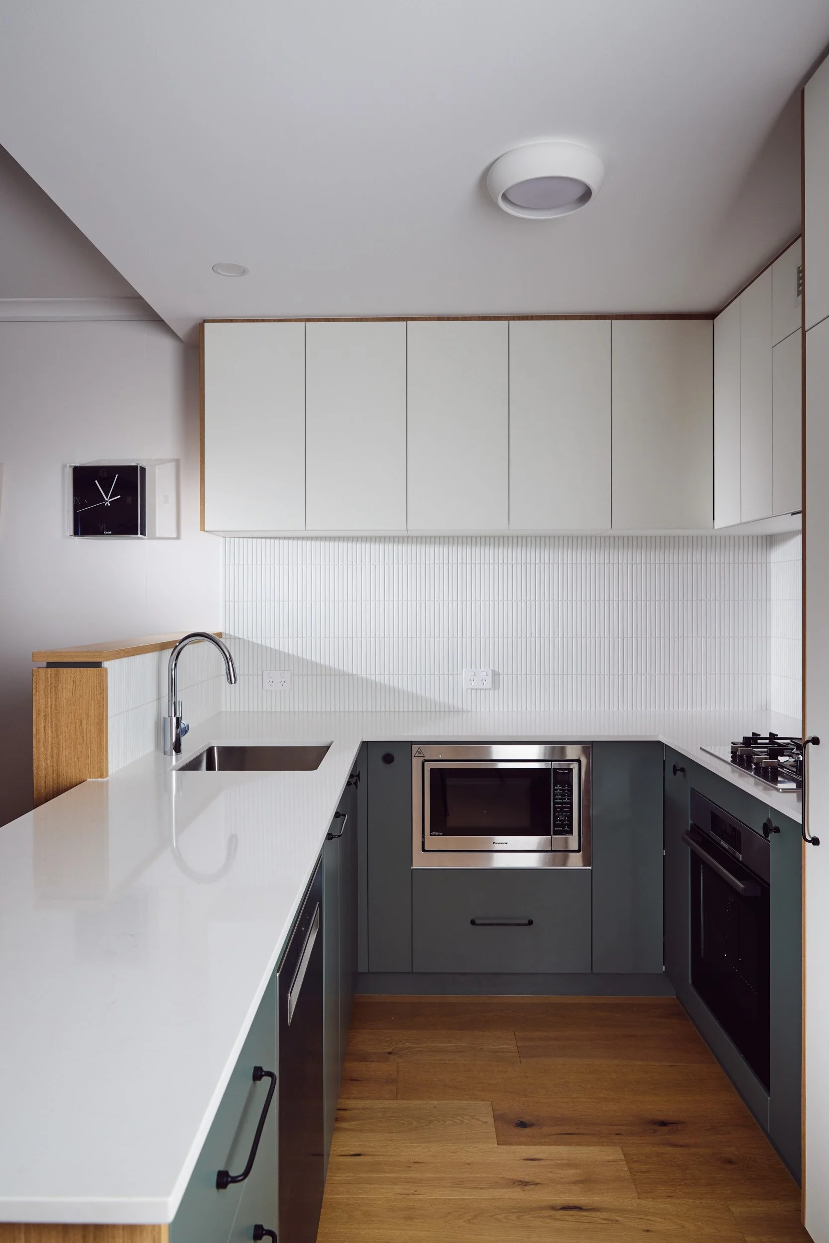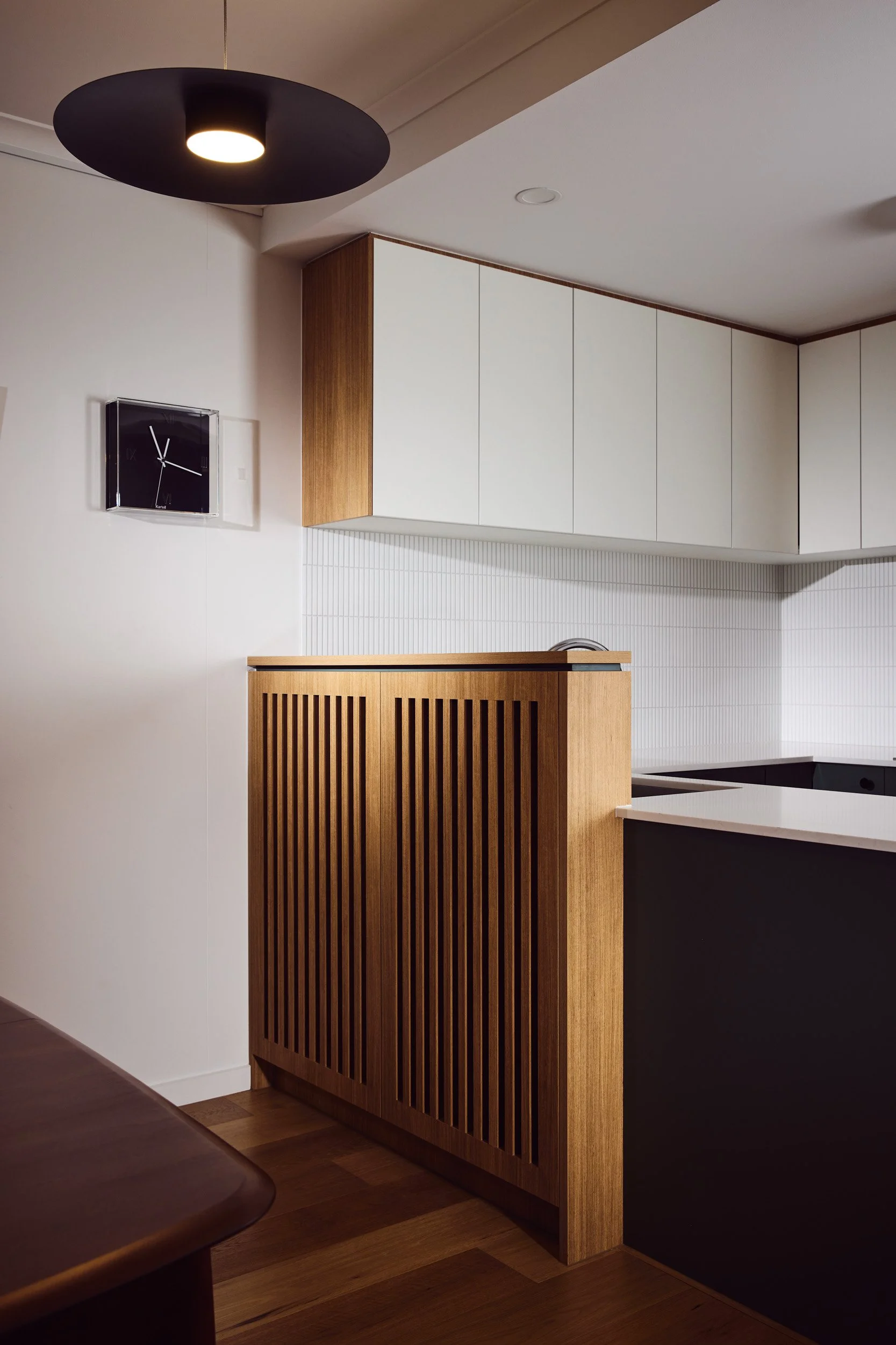 Being an apartment, there were limitations to location of plumbing and other services, so there were no major changes to the floorplan - but rather a considered approach to flooring, joinery and materials, which created the perfect space for our client to call home.
