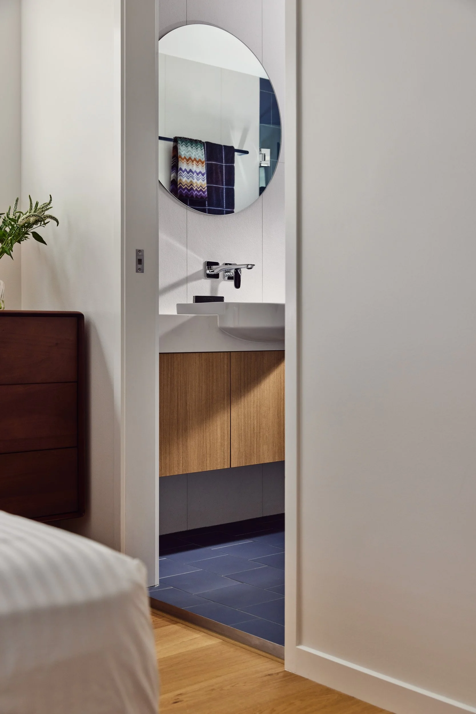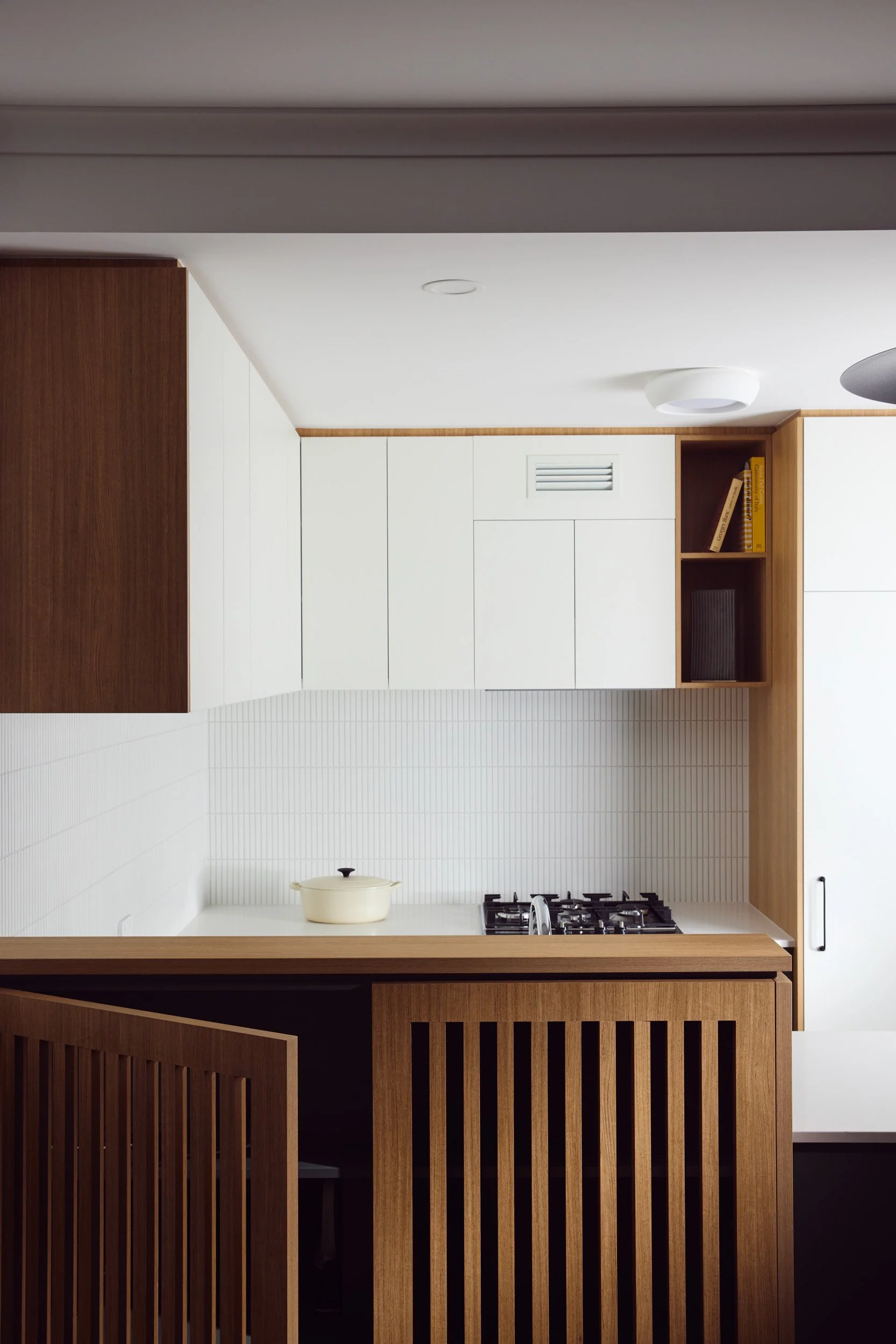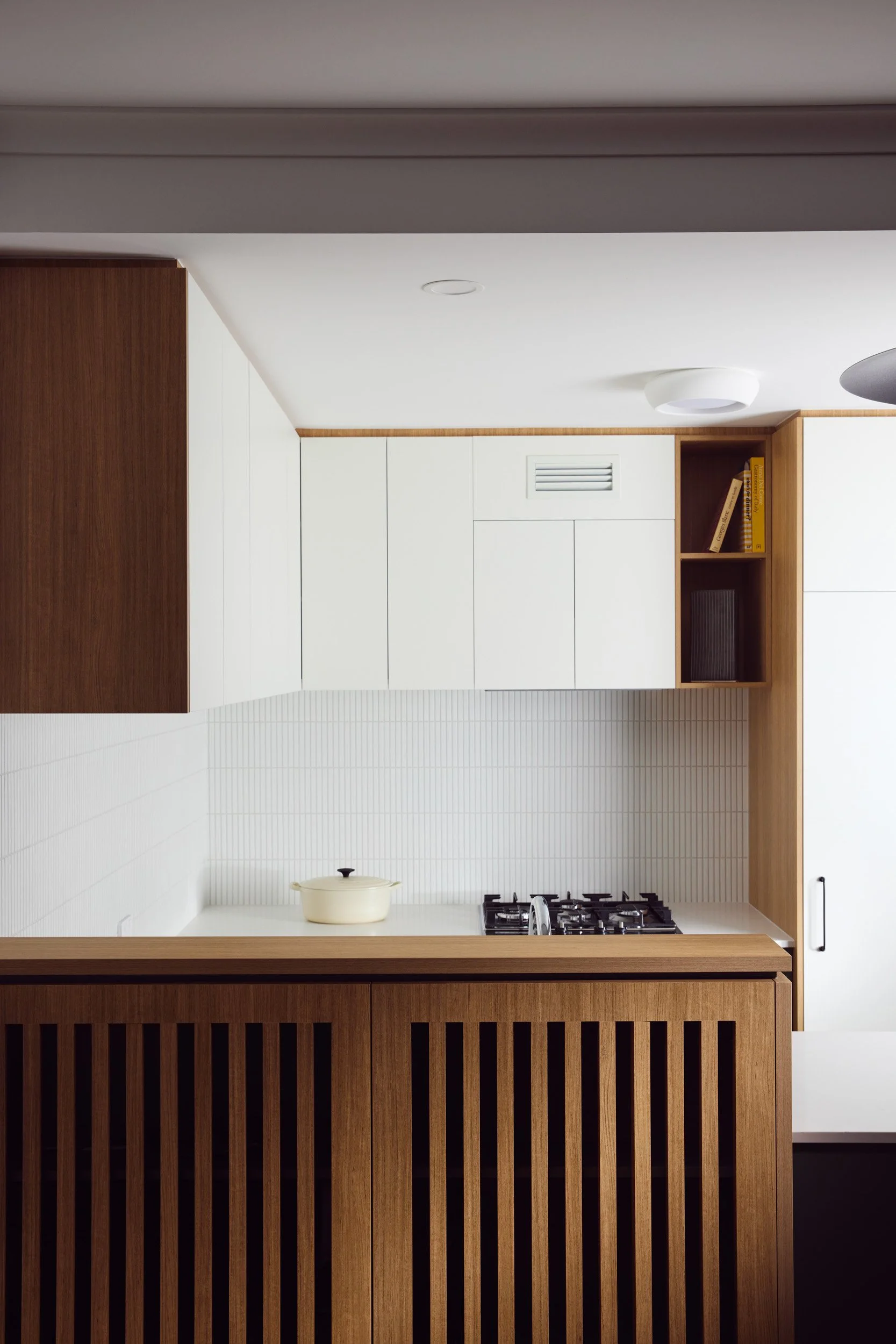 Being an apartment, there were limitations to location of plumbing and other services, so there were no major changes to the floorplan - but rather a considered approach to flooring, joinery and materials, which created the perfect space for our client to call home.