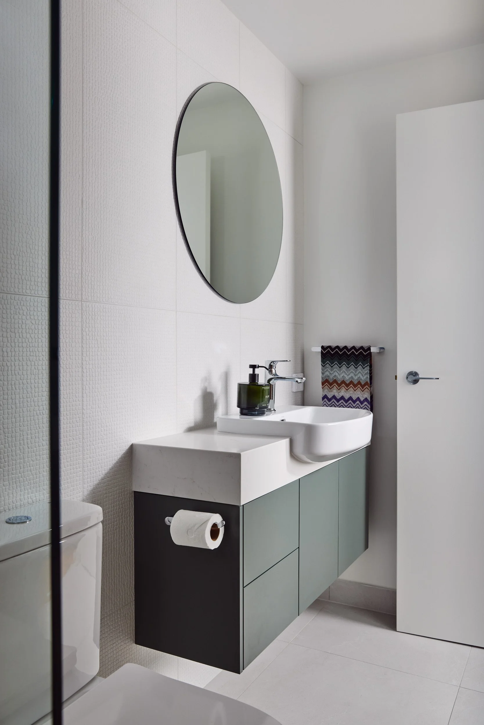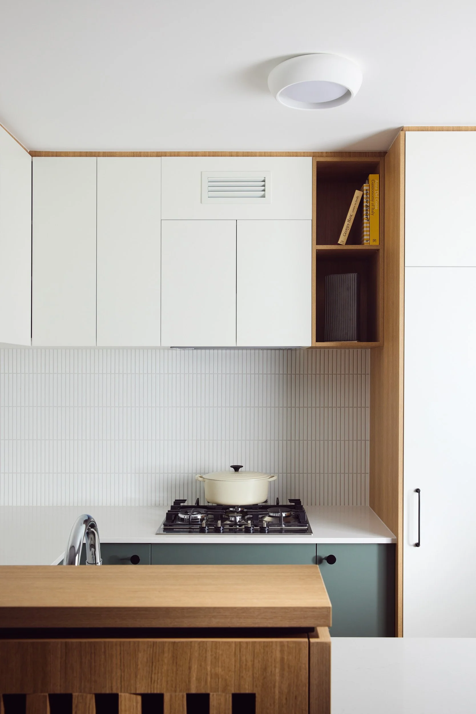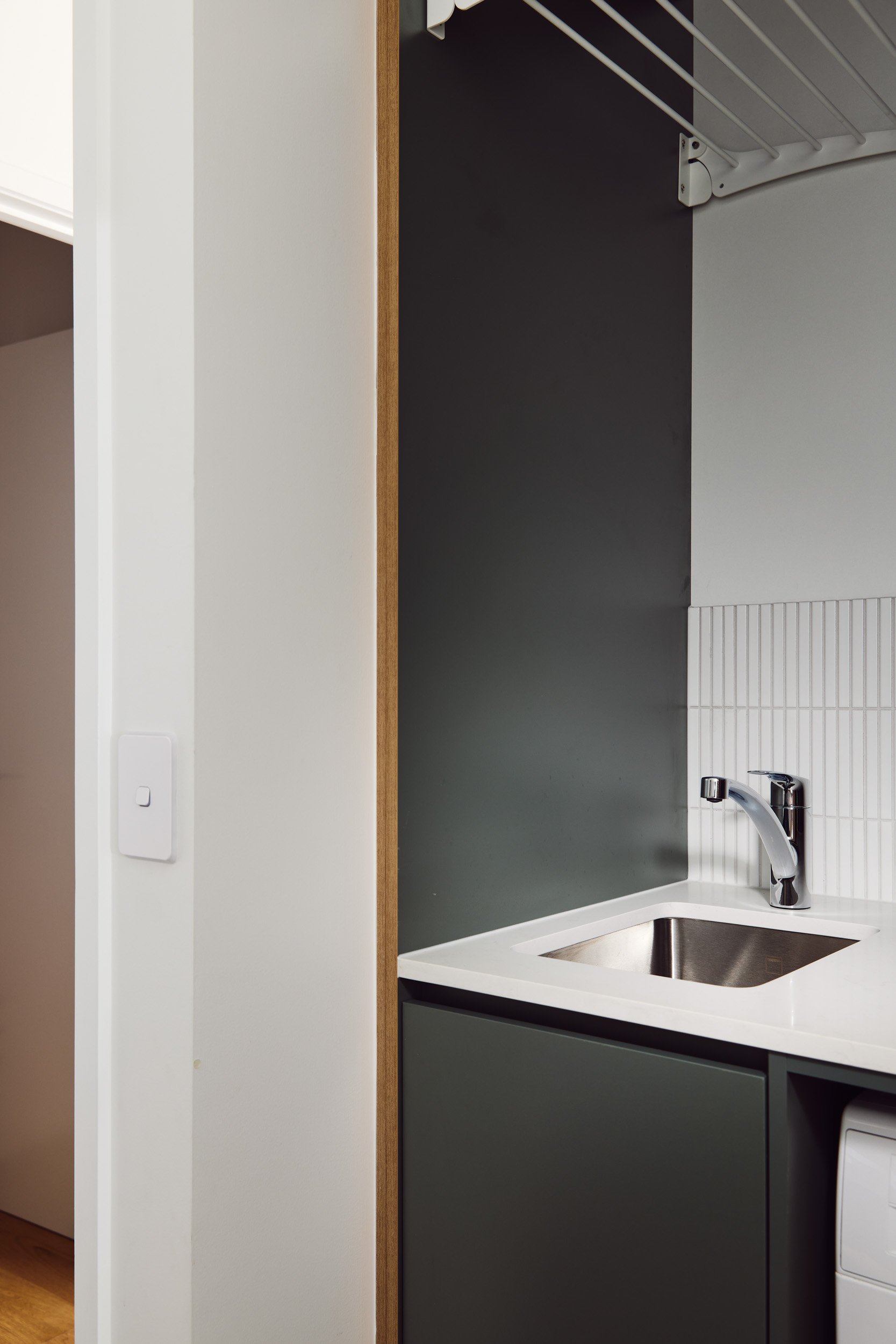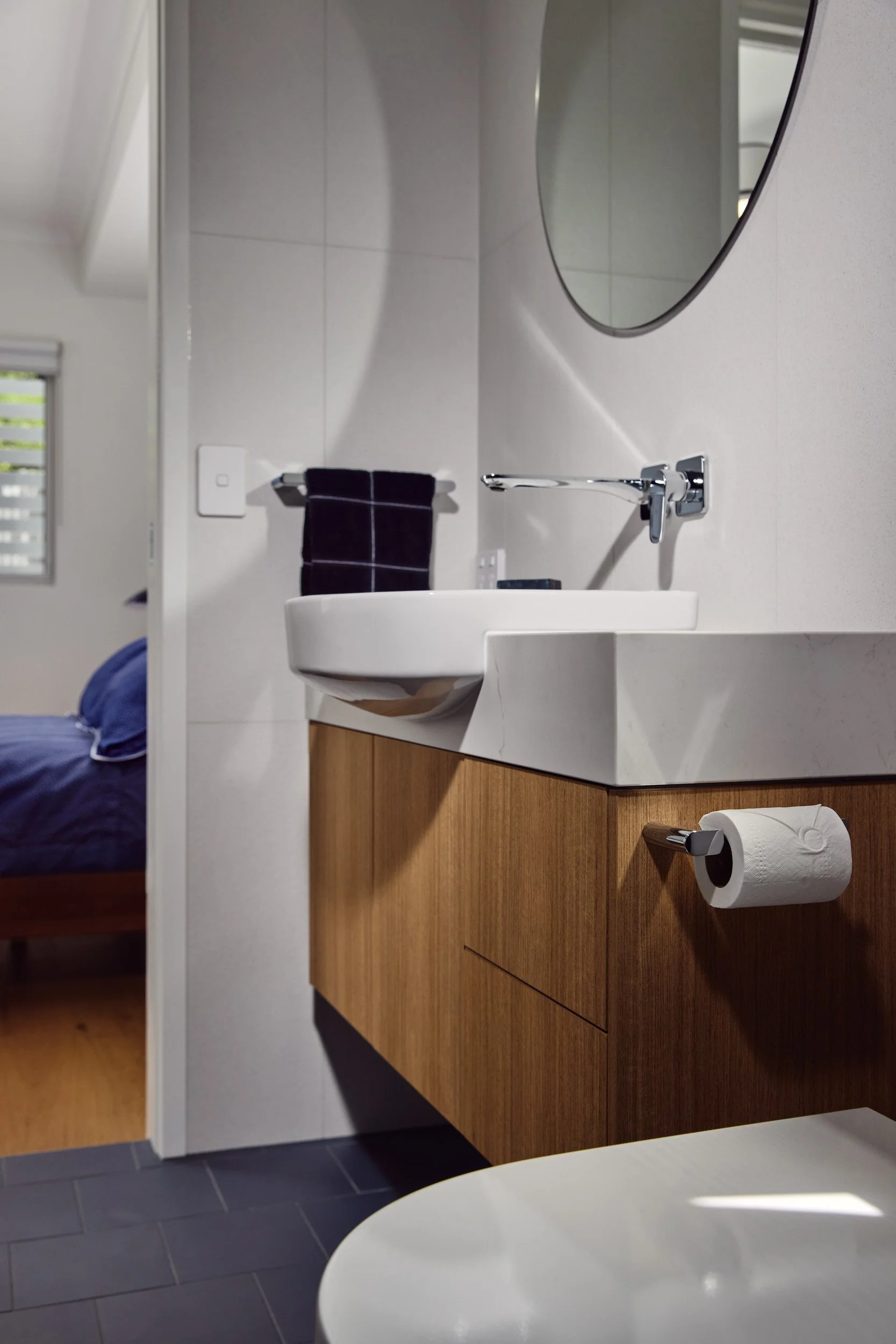 Being an apartment, there were limitations to location of plumbing and other services, so there were no major changes to the floorplan - but rather a considered approach to flooring, joinery and materials, which created the perfect space for our client to call home.